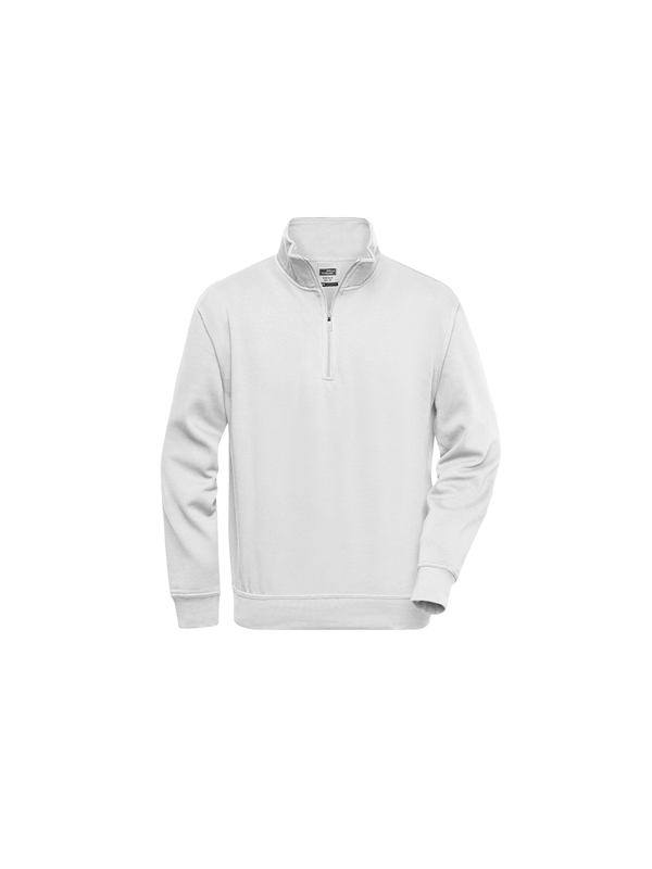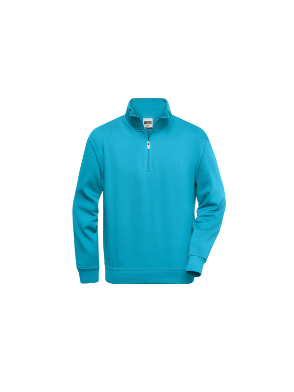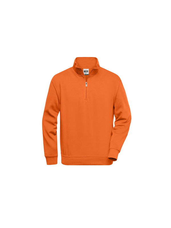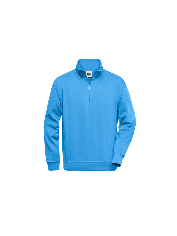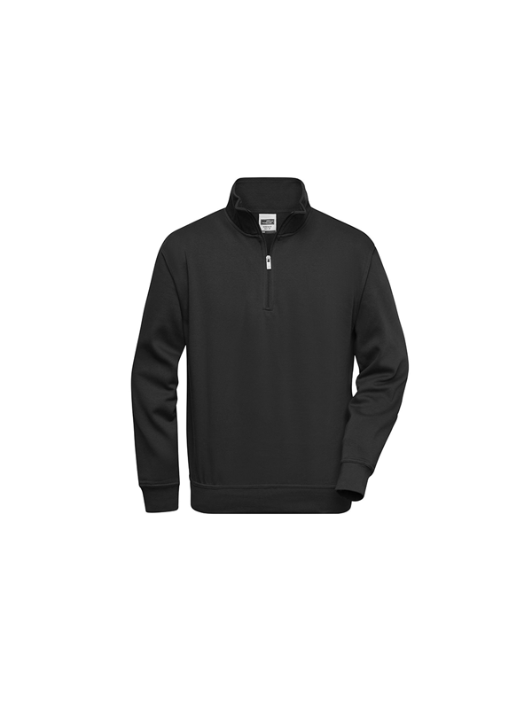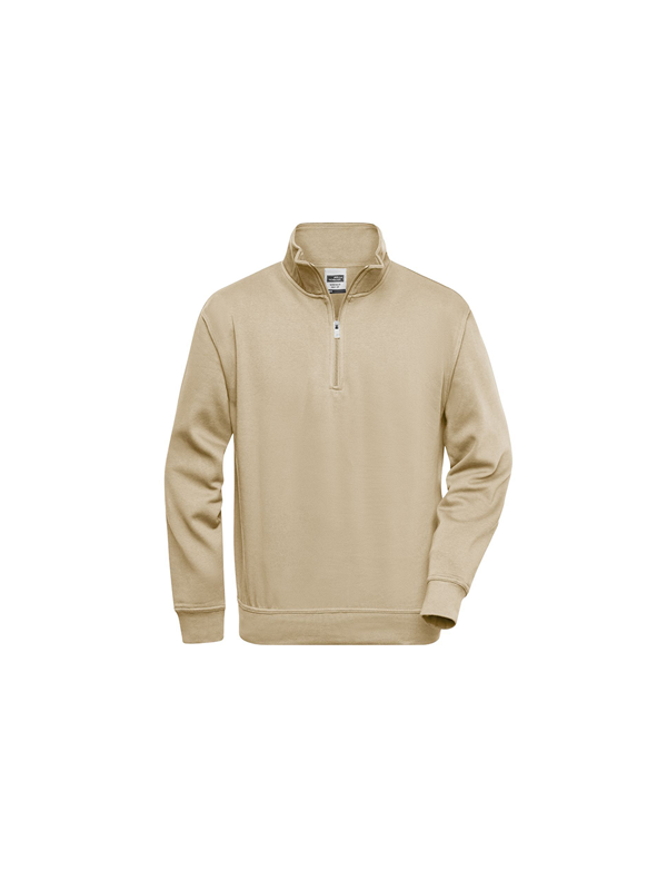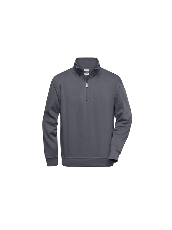 felpa con maniche set-in, mezza zip, tessuto resistente ed elastico, polsini e orlo inferiore in costina a maglia, struttura con cuciture laterali, felpata internamente.