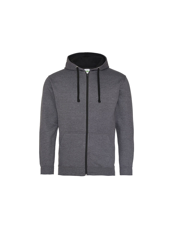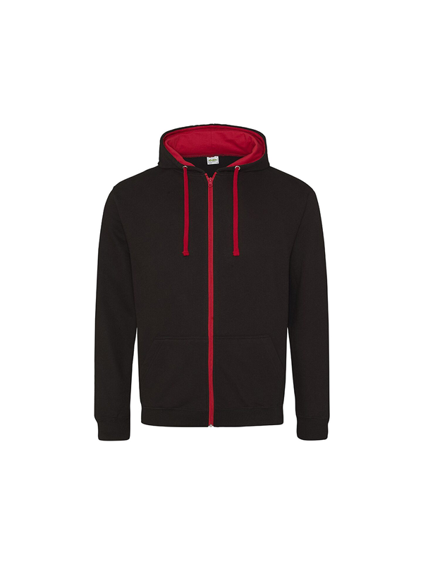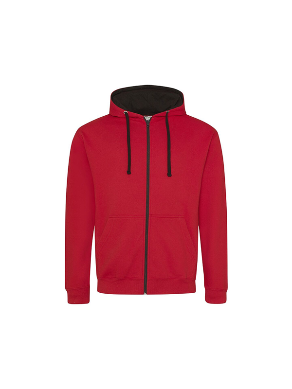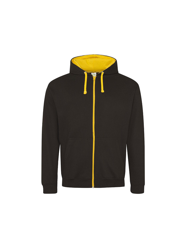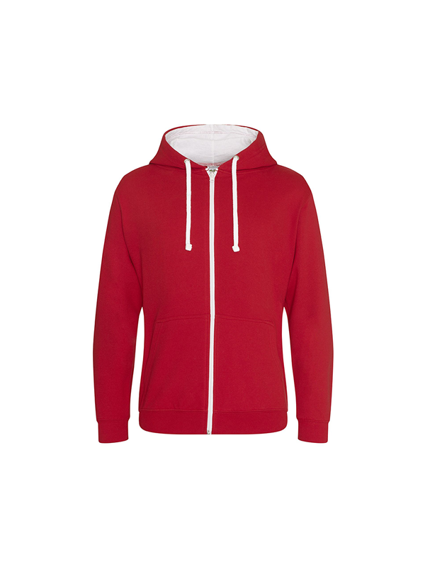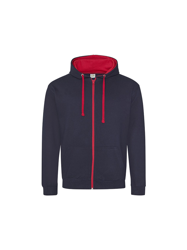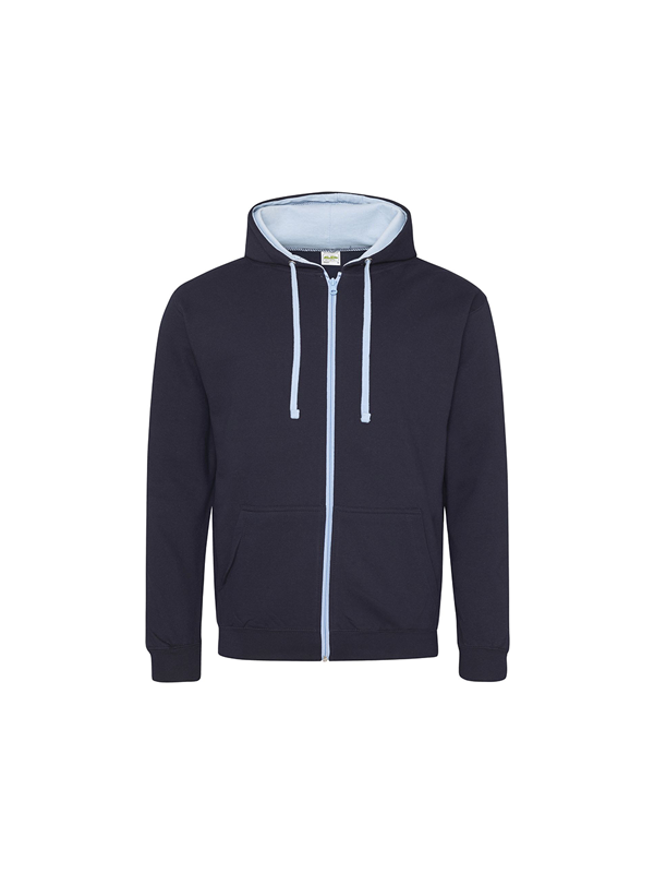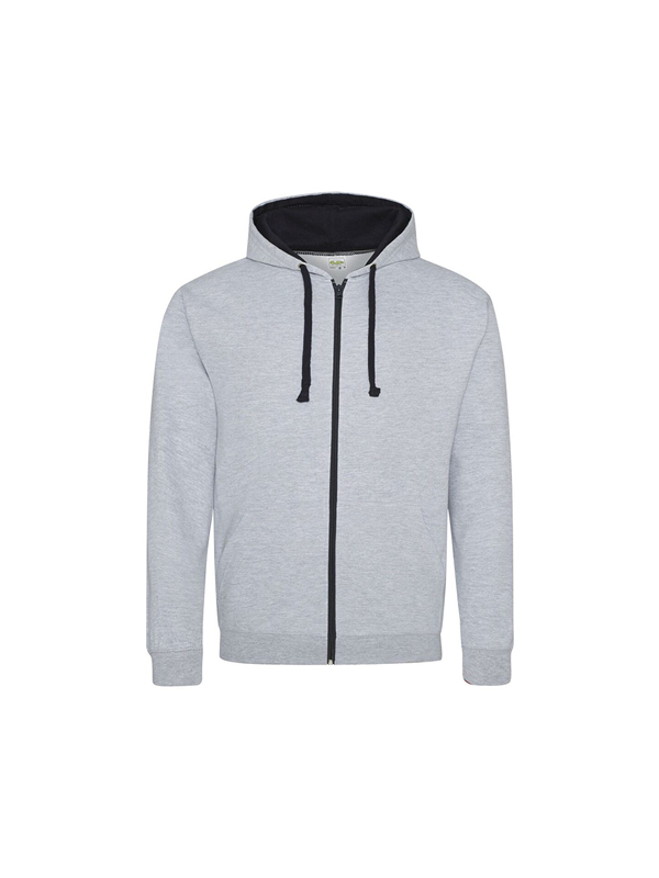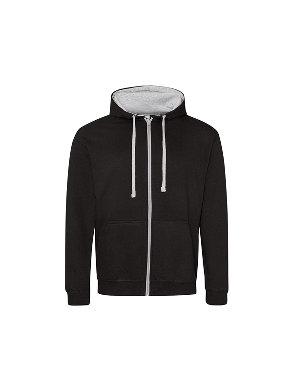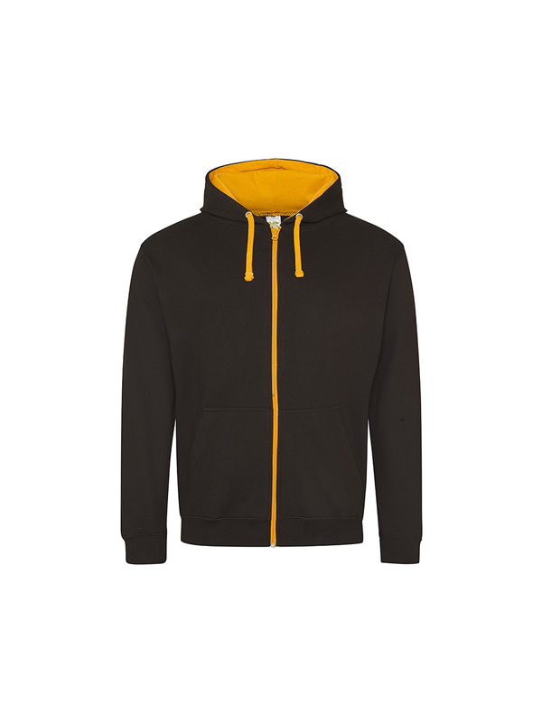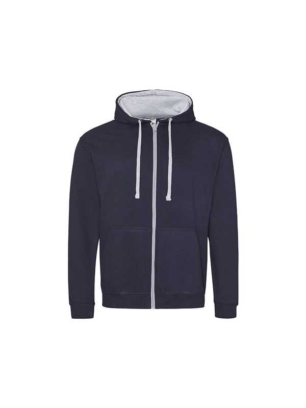 Felpa con cappuccio doppio strato e chiusura con zip in plastica, cuciture doppie a dettaglio, interno del cappuccio e cordoncini piatti a contrasto, tasca a marsupio, felpata internamente, polsini e orlo a costine.