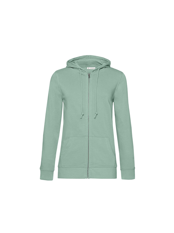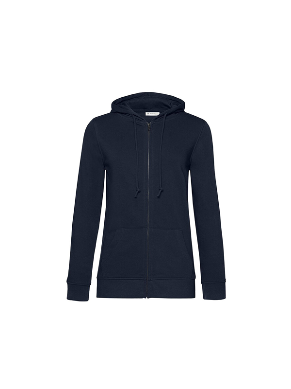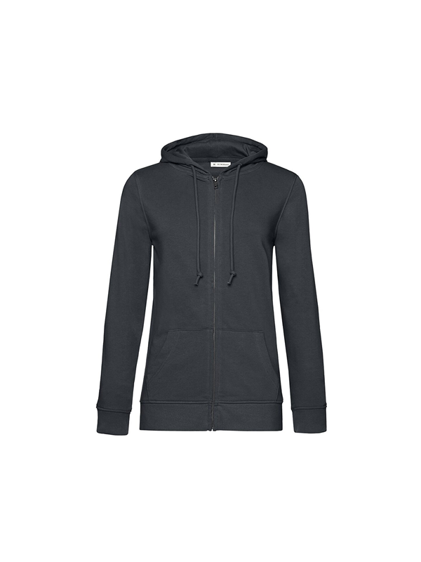 Felpa organica con  cappuccio foderato in jersey  e cerniera struttura con cuciture laterali, nastro parasudore, sgarzata internamente. Prodotta utilizzando 5 bottiglie di plastica reciclate.