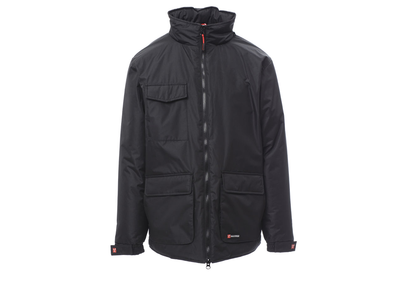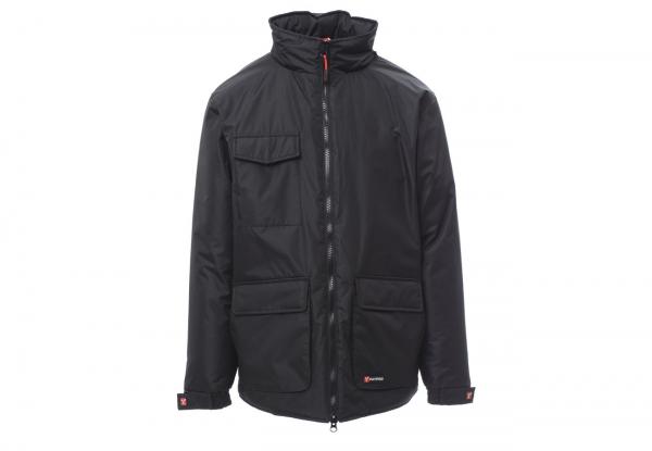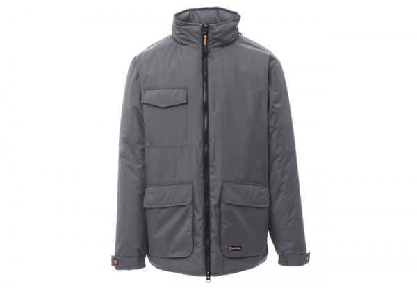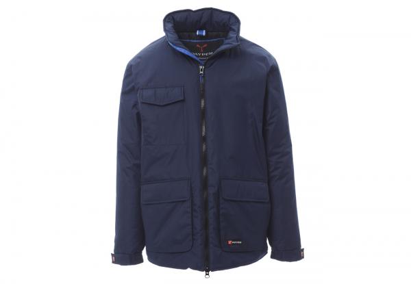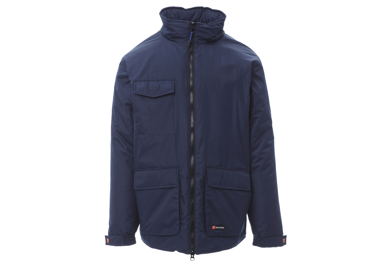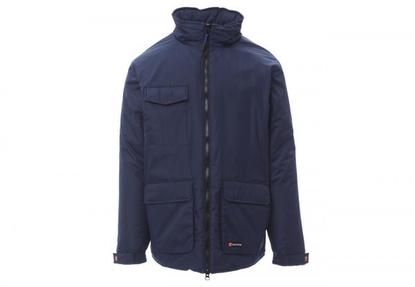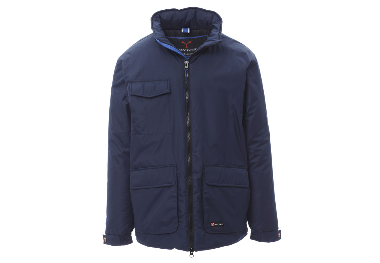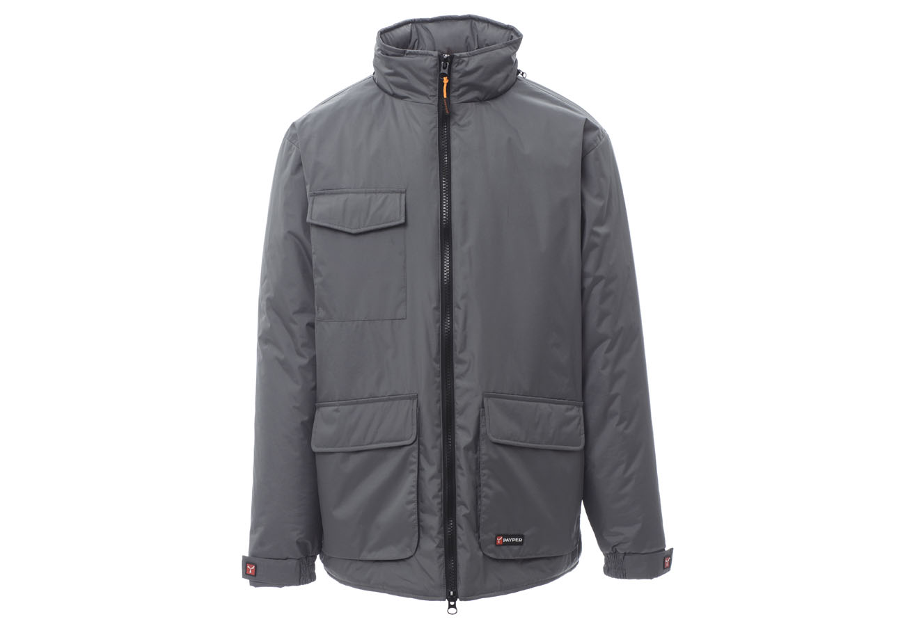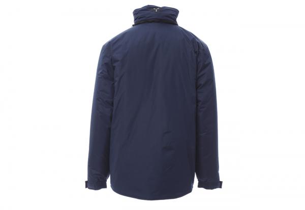 Giubbino a 3/4 da uomo, zip 8mm in plastica con cursore in metallo, cappuccio richiudibile nel colletto, elastico e stringi polsi, due ampie tasche frontali LOCK-SYSTEM, due tasche laterali, porta cellulare al petto. Interno: imbottito, zip per agevolare stampe e ricami.