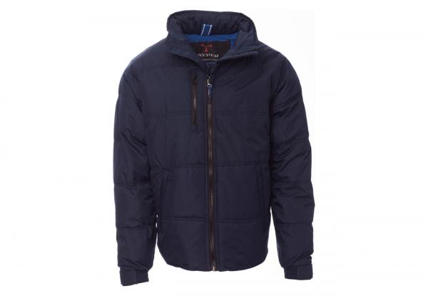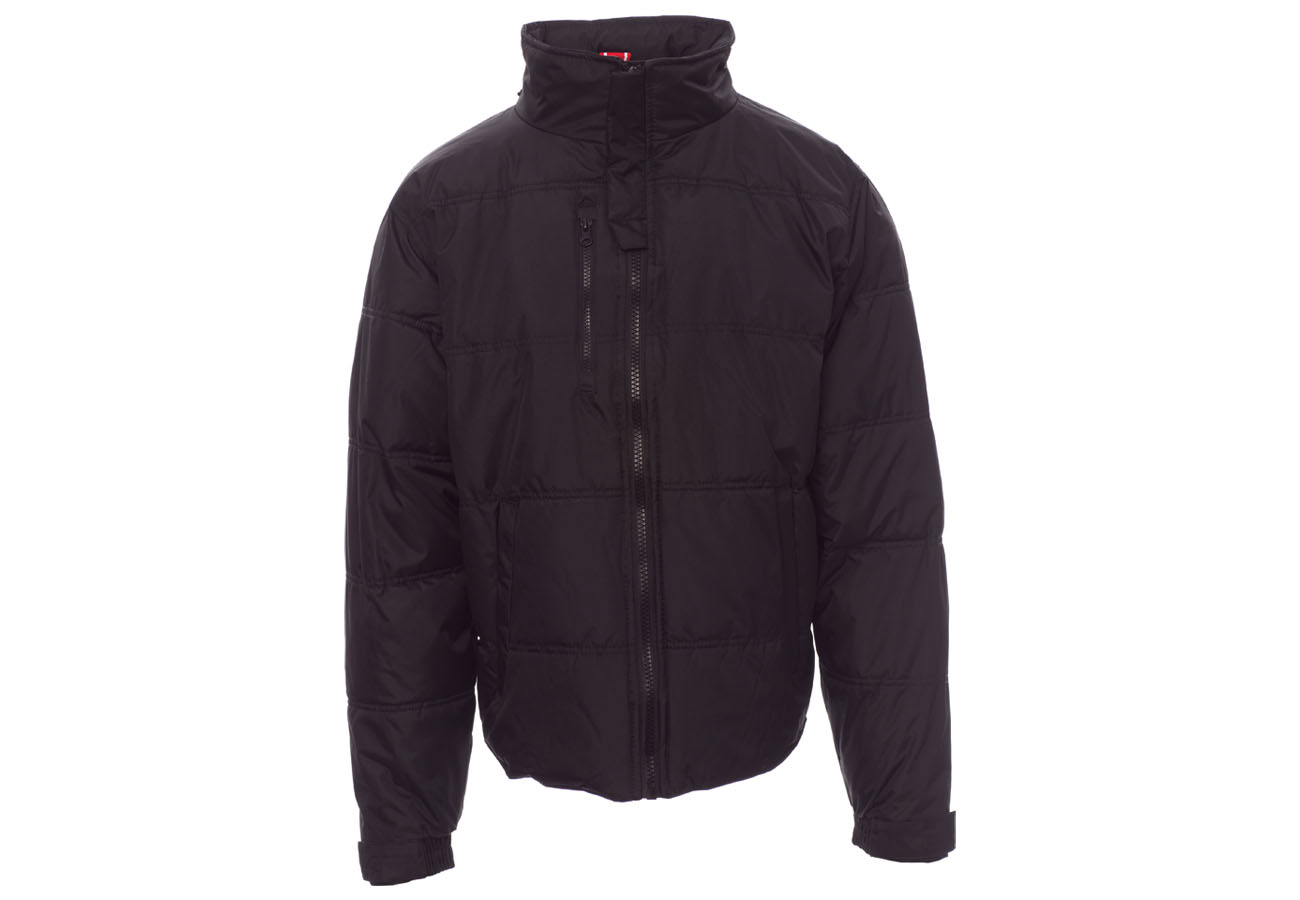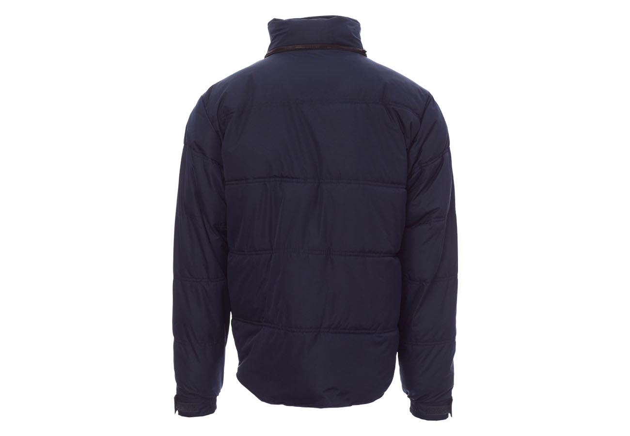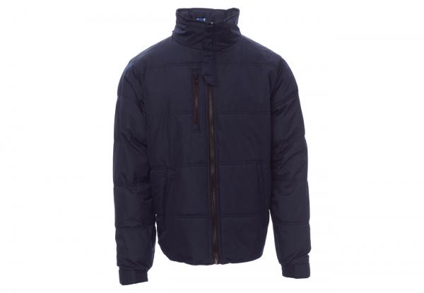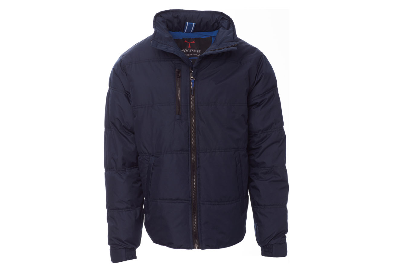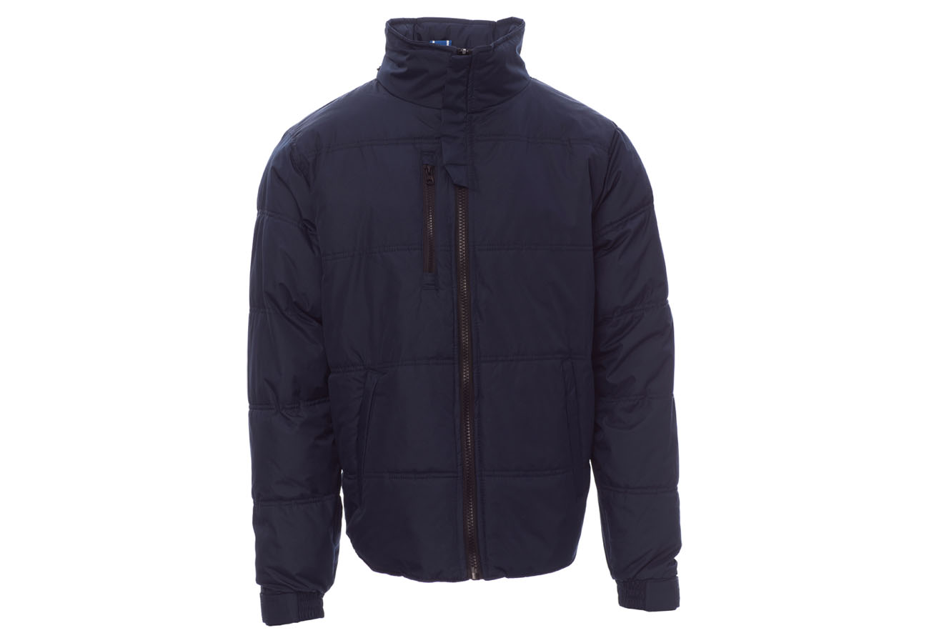 Giubbino da uomo, zip 8mm in plastica con cursore in metallo, cappuccio richiudibile, polsini regolabli, due tasche laterali con zip, una tasca al petto. Interno: imbottito e in micropile in contrasto