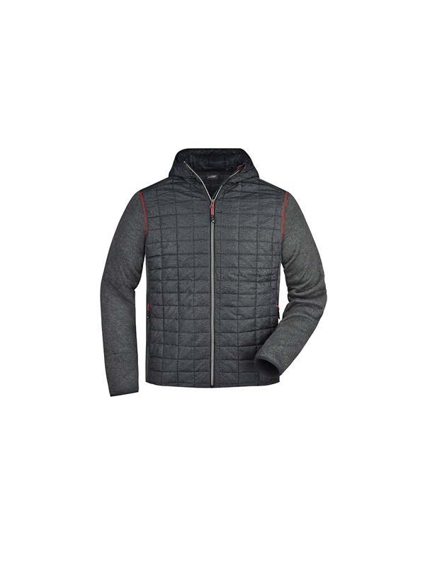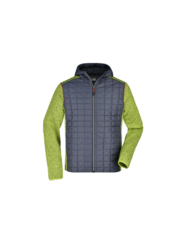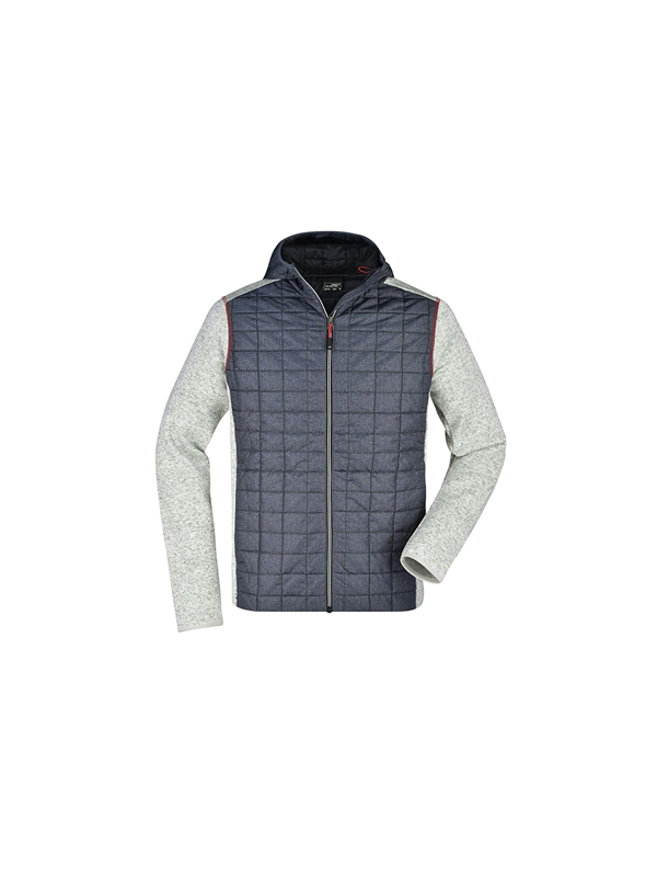 Giacca lavorata a maglia, easy care, colore melange, tasche con cuciture piatte contrastanti, cappuccio aggiustabile, cerniera nascosta, 2 tasche laterali con cerniera, 2 tasche interne.