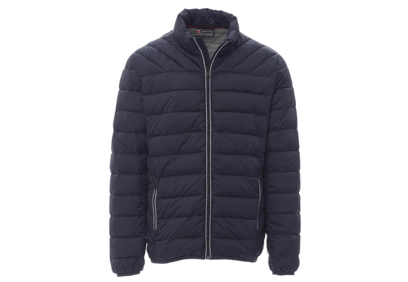 Giubbino/piumino da uomo , zip 5mm in plastica con cursore in metallo, fine bordino ai polsi e in vita, due tasche esterne. Interno: imbottito di poliestere effetto piuma, due tasche.