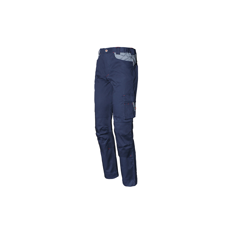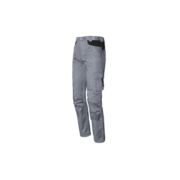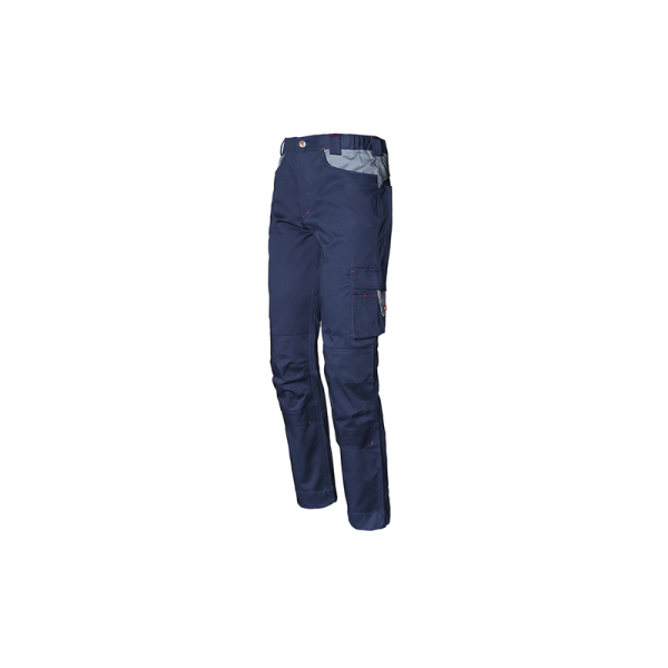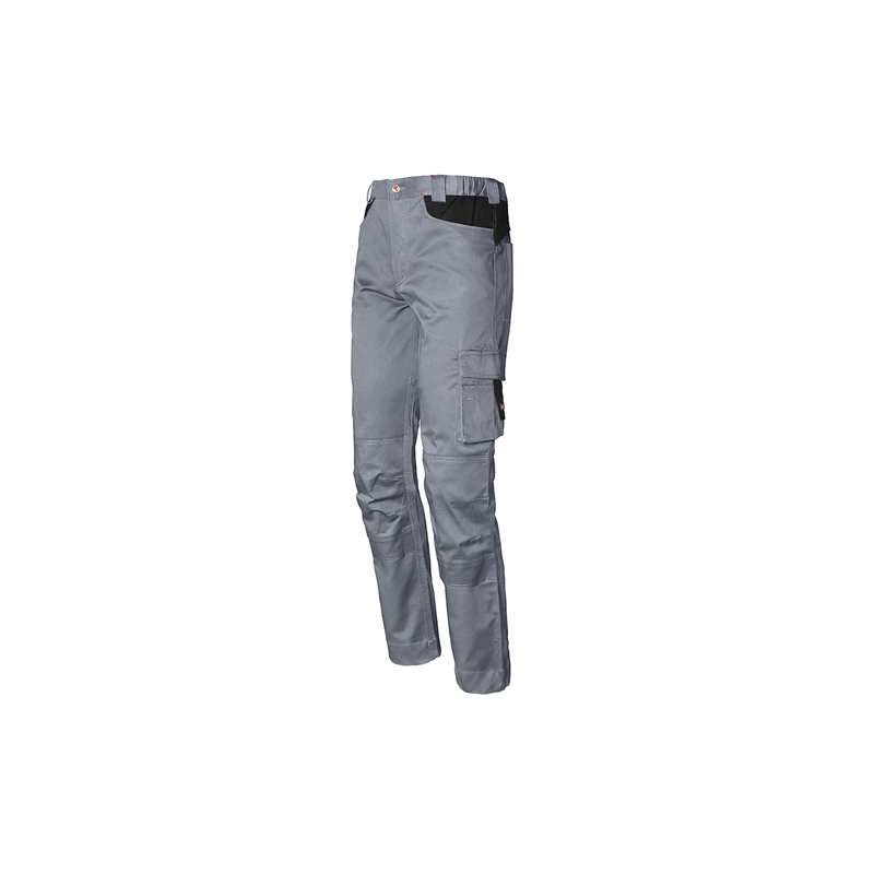 Pantalone con elastico in vita, tascone laterale e tascone porta metro, porta ginocchiere in tessuto stretch.