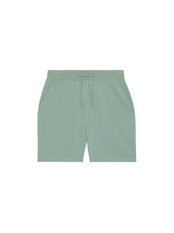 Pantaloncini in felpa french terry, tasche foderate in single jersey, tasca applicata sul retro, girovita a costine 1x1, cordini tondi tono su tono con punta in metallo, occhielli in metallo, cuciture doppie. Etichetta strappabile.