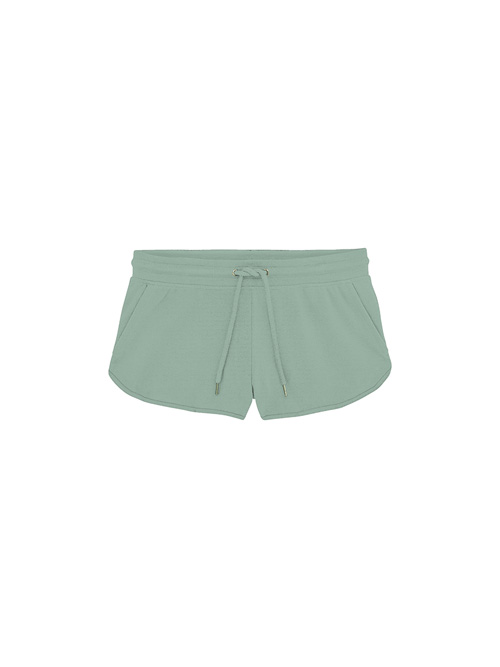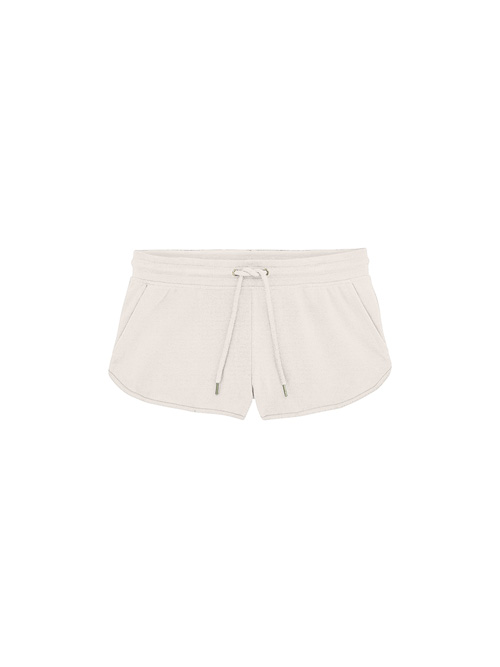 Pantaloncini in felpa french terry, interno del girovita e delle tasche in jersey, cordini tondi tono su tono con punta in metallo, occhielli in metallo, finitura con jersey su bordo inferiore e fianchi, impuntura flatlock su girovita e apertura tasche. Etichetta strappabile.